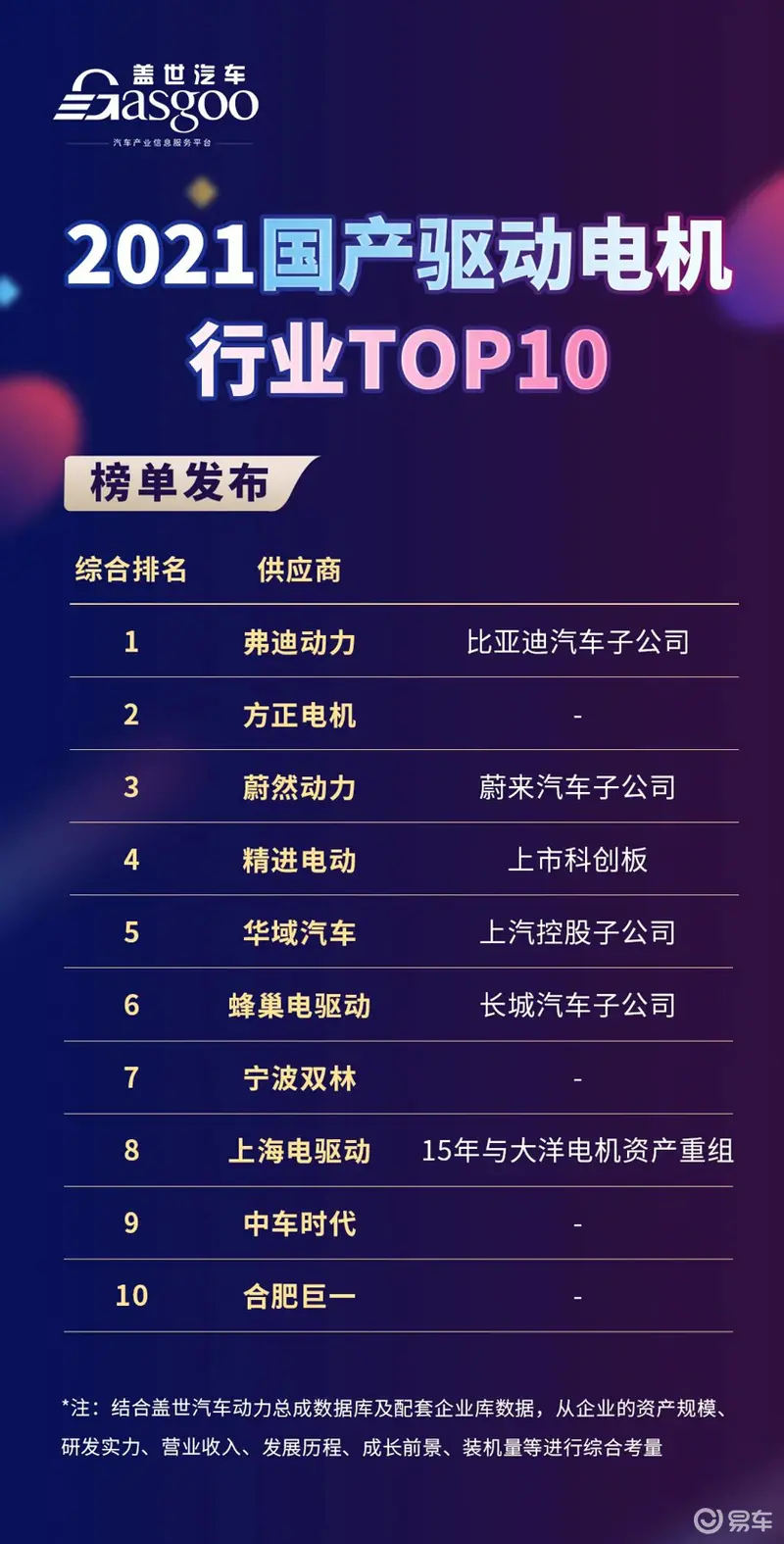 2021国产驱动电机行业TOP10